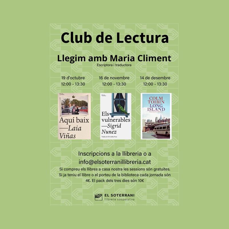 El nostre proper club de lectura el dirigirà Maria Climent, qui ha seleccionat els llibres i conduirà presencialment les sessions a casa nostra.