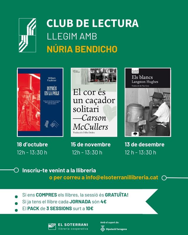 Si voleu assistir al club de l'ectura cal inscriure's passant per la llibreria o bé escrivint-nos un correu electrònic a info@elsoterranillibreria.cat. Si compreu els llibres a casa nostra les sessions són gratuïtes. Si ja teniu el llibre o el porteu d'alguna biblioteca el preu per dia són 4€. El pack dels tres dies són 10€.
