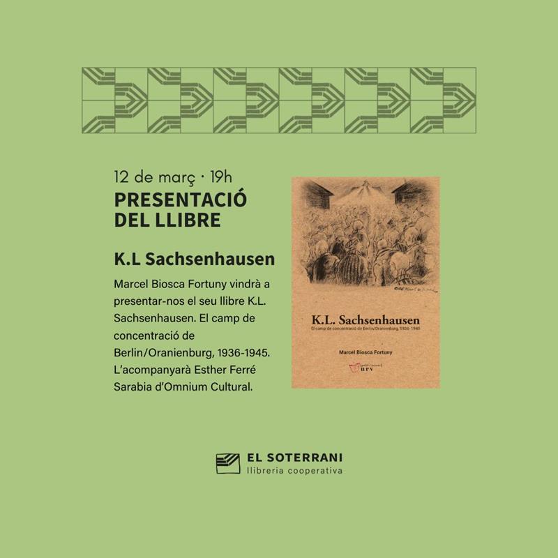 Dimarts, 12 de març, Marcel Biosca Fortuny vindrà a presentar-nos el seu llibre K.L. Sachsenhausen. El camp de concentració de Berlin/Oranienburg, 1936-1945. L'acompanyarà Esther Ferré Sarabia, d'Omnium Cultural.