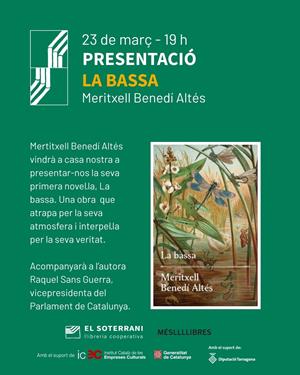 Dilluns, 23 de març, Meritxell Benedí Altés vindrà a casa nostra a presentar el seu primer llibre, La bassa. Acompanyarà l'autora Raquel Sans Guerra, vicepresidenta del Parlament de Catalunya.