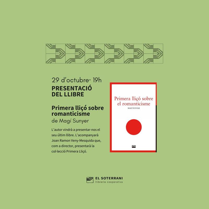 Dimarts, 29 d'octubre, Magí Sunyer vindrà a presentar-nos el seu llibre Primera Lliçó Sobre Romanticisme, editat per Publicacions Abadia de Montserrat.