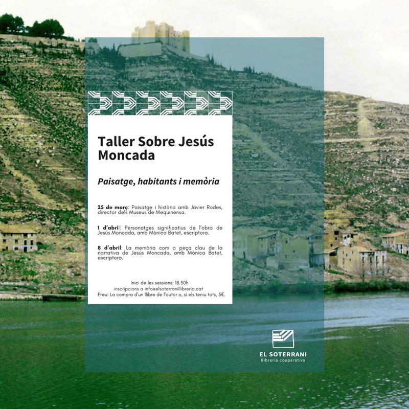 A El Soterrani organitzem un taller de tres sessions per parlar de la narrativa de Jesús Moncada, un escriptor que va convertir la població on va néixer, Mequinensa, en un dels universos literaris més importants de la literatura catalana contemporània. En aquestes sessions parlarem d’alguns dels aspectes que defineixen i diferencien la seva obra: Mequinensa, personatges significatius i l’aprofitament de la memòria.