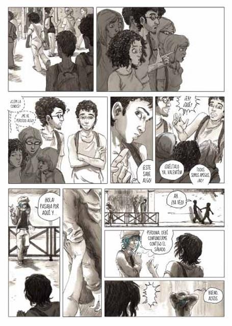 Clementine es una adolescente sin problemas. Llega del campo para integrarse en un instituto en el que se siente a gusto. Un día se cruza en la calle con una pareja de chicas. Una lleva el pelo teñido de azul, y le sonríe, mientras Clementine baja la vista. A partir de este preciso momento todo va a cambiar para ella: su relación con sus nuevos amigos, su sitio en la familia, sus prioridades? y sobre todo su sexualidad. Es difícil saber qué aspecto tiene el amor. A veces duele y siempre hay obstáculos en el camino. Pero un calor inabarcable se instala en el estomago, que te hace vibrar y te empuja a superarte. Estamos delante de una obra que describe con mucha delicadeza lo cotidiano de una joven mujer mediante la lectura de sus diarios. La ilustración de Julie Maroh permite identificarse con sus protagonistas sin apenas darnos cuenta. El trazo de la autora propone unas perspectivas, unas posturas tan inesperadas como la vida misma. Clementine y Emma intentan amarse a pesar de las dificultades que supone la visión de la homosexualidad por parte de la sociedad actual y los propios prejuicios de Clementine. Pero descubrimos una historia de amor que, a pesar de ser trágica, podría ser la de cualquiera, y sin diluir su intensidad en una profusión de reivindicaciones sociales. Aprender, crecer, amar. Eso es lo que nos enseña este emotivo y absorbente slice-of-life, adentrándonos en lo más personal y lo más intimo de dos jóvenes valientes. Acompañado de una exposición de originales en Bruselas, de una venta de más de 7.000 ejemplares en francés (reimpreso después de un mes) y del Premio otorgado en 2011 por el Público en el mayor festival de cómic de Europa, el Festival de Angoulême en Francia, llega la novela gráfica más sensible y sincera que hemos podido leer en mucho tiempo? También está premiada con el Premio Autor Novel en el Salón del Cómic y de las Artes gráficas de Roubaix (Francia) y el Premio del Consejo Regional del Festival de Blois (Francia), por su contenido ciudadano, ambos en el año 2010.