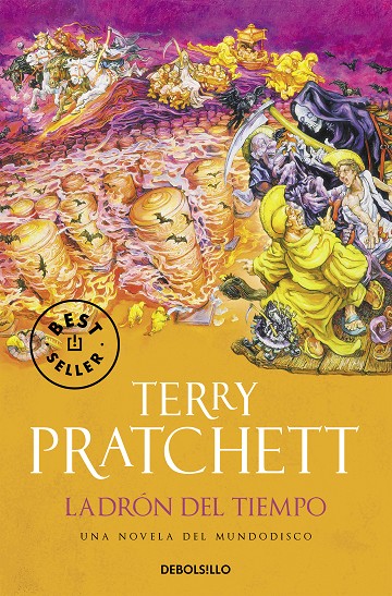 En el Mundodisco se inicia una carrera contrarreloj para impedir que el Tiempo se detenga... La entrega número 26 de la serie del Mundodisco. Tic Las figuras grises conocidas como los Auditores de la Realidad piensan que los humanos ya han desordenado bastante el universo con su irracionalidad y su fantasía. Y han ideado un plan: detener el tiempo para catalogar y organizar tranquilamente todo lo que existe. Tac El tiempo, sin embargo, tiene sus propios paladines. Los Monjes de la Historia trabajan desde su monasterio para que los humanos puedan seguir jugando con el tiempo, ganándolo, perdiéndolo o regalándolo. TicMientras en Ankh-Morpork un relojero empieza a construir el reloj que marcará con toda precisión el tic del universo y detendrá el tiempo, en el lejano monasterio un joven extraordinario inicia su aprendizaje junto al héroe de mil historias Lu-Tze el Barredor. Tac El tiempo avanza inexorable hacia su fin, y los cinco (¡no, no eran cuatro!) jinetes del Apocalipsis recorren el Mundodisco. Solo la Muerte sabe que tal vez el mismísimo Tiempo sea más humano de lo que debiera, que puede haber tenido un hijo y que, si quiere impedir el plan de los Auditores, necesitará la ayuda de la familia. Ti...Reseña: «Aparte de las sonoras carcajadas que provoca, Ladrón del tiempo sigue proporcionando ese placer en estado puro que explica las legiones de adictos a las novelas de Pratchett.» The Times