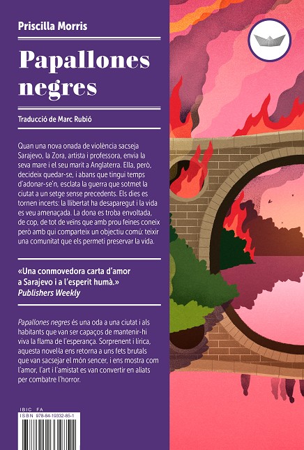 "Quan una nova onada de violència sacseja Sarajevo, la Zora, artista i professora, envia la seva mare i el seu marit a Anglaterra. Ella, però, decideix quedar-se, i abans que tingui temps d’adonar-se’n, esclata la guerra que sotmet la ciutat a un setge sense precedents. Els dies es tornen incerts: la llibertat ha desaparegut i la vid es veu amenaçada. La dona es troba envoltada, de cop, de tot de veïns que amb prou feines coneix però amb qui comparteix un objectiu comú: teixir una comunitat que els permeti preservar la vida. Papallones negres és una oda a una ciutat i als habitants que van ser capaços de mantenir-hi viva la flama de l’esperança. Sorprenent i lírica, aquesta novel·la ens retorna a uns fets brutals que van sacsejar el món sencer, i ens mostra com l’amor, l’art i l’amistat es van convertir en aliats per combatre l’horror."