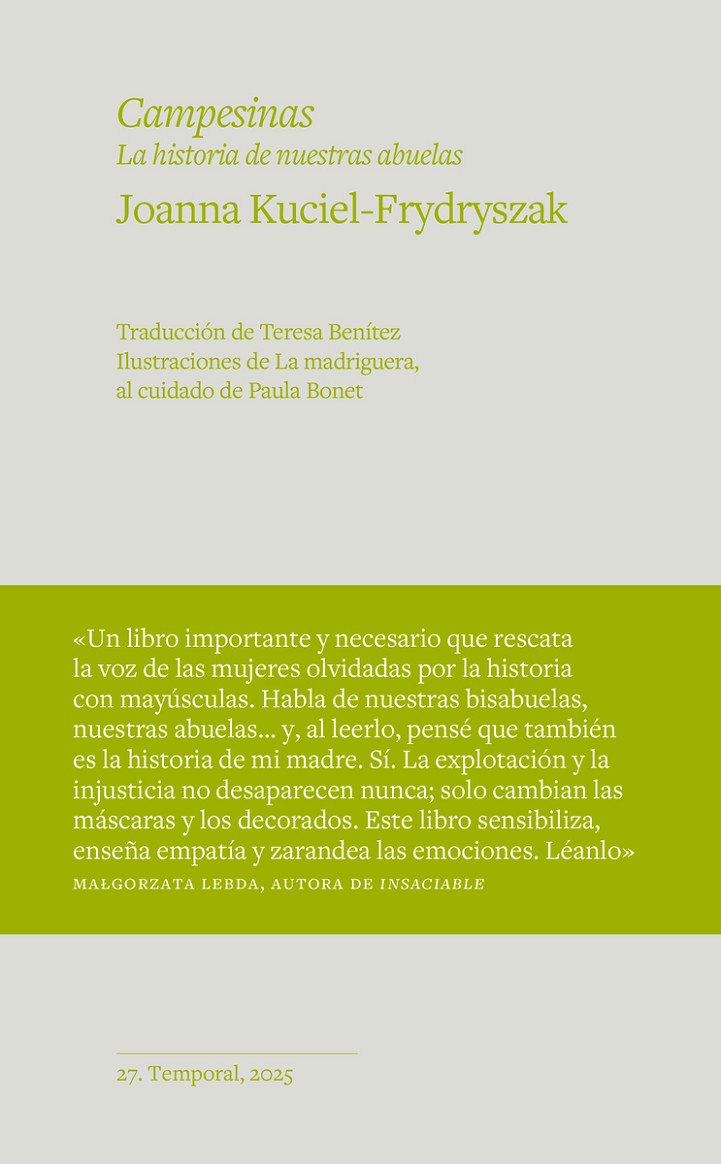 Campesinas. La historia de nuestras abuelas es el recorrido por la vida de unas mujeres que se afanaron en dar un futuro mejor a las que las siguieron y que, a pesar de las adversidades, supieron encontrar siempre un camino de hermandad, refugio y ánimo. Esta edicion, además, cuenta con las ilustraciones llenas de fuerza y belleza que han realizado once artistas del taller La madriguera, al cuidado de Paula Bonet.
