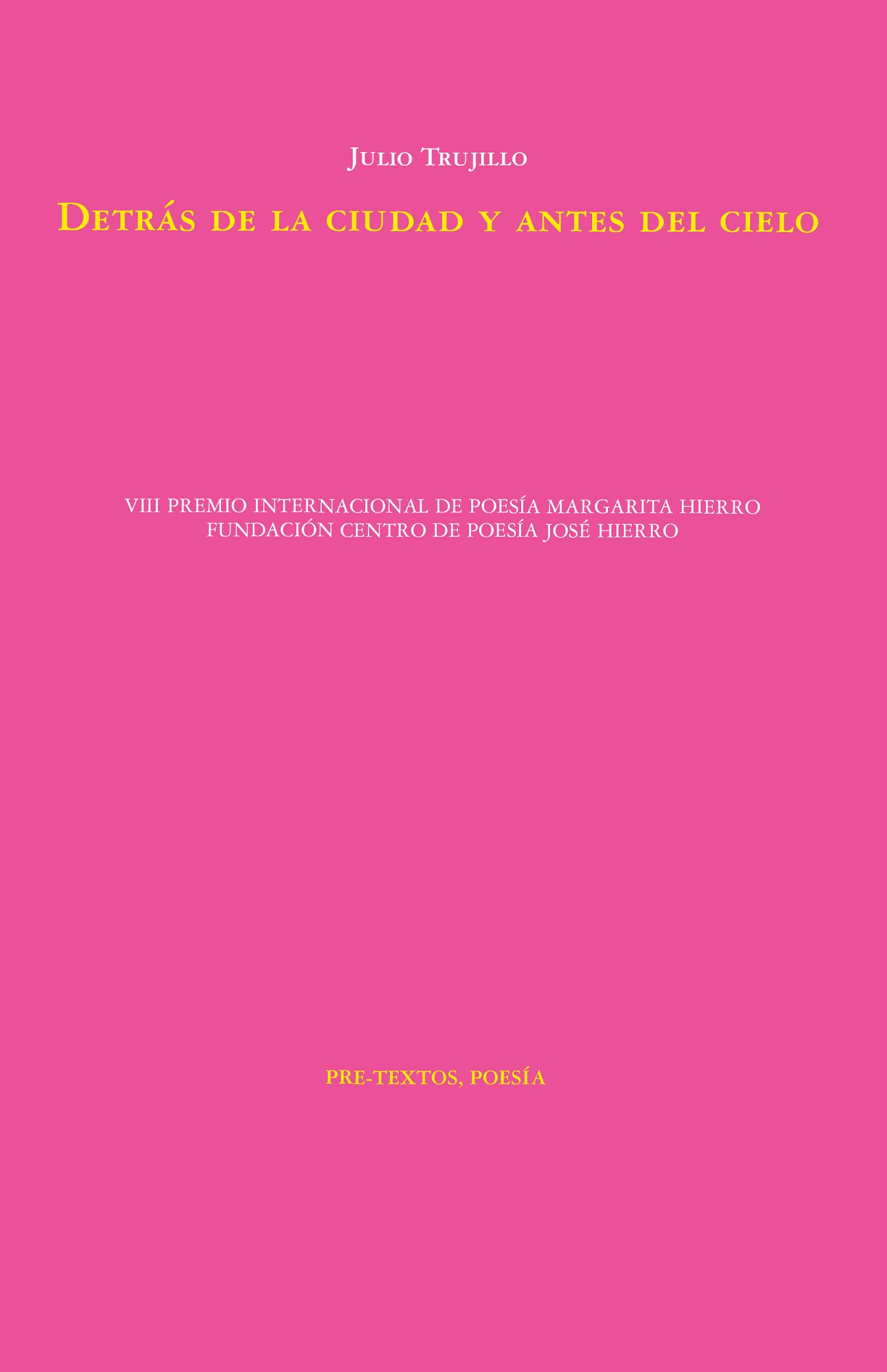 Magnetizado por el horizonte, el skyline de la gran ciudad en el que destacan dos históricos volcanes, un poeta insomne habla como quien desgrana una plegaria. Su voz, amenazada con perderse en el bullicio de la megalópolis, parecería resonar en un silencio afantasmado, como si su soledad lo recortara contra el mundo y lo sacara de este: es el testigo de la misteriosa duración del tiempo y su presente puro. Detrás de la ciudad y antes del cielo es el testimonio de un muy individual spleen, es la voz de un ciudadano que, para encontrarse, debe perderse primero e intentar decirlo todo conforme lo asaltan las palabras.