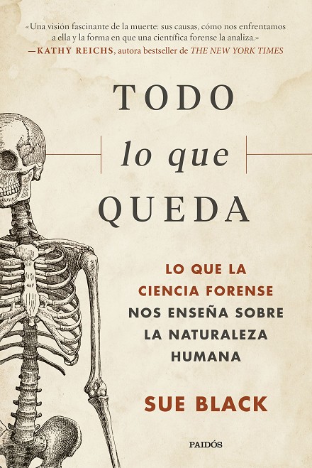 ¿Se supone que un texto sobre la muerte debe ser triste? ¿Macabro? Todo lo que queda no es ninguna de las dos cosas. La doctora Sue Black es una de las antropólogas forenses más reconocidas del mundo y se enfrenta a la muerte todos los días, tanto dentro como fuera de su laboratorio. Basándose en sus experiencias y dejándose guiar por distintos casos clave y relatos de su vida personal, la autora nos revela los muchos rostros de la muerte que ha llegado a conocer y explora los avances de la ciencia forense y lo que los casos le han enseñado sobre la naturaleza humana. En parte memoir, en parte divulgación científica, y acompañada de una profunda reflexión sobre el fin de la vida, esta compasiva obra, sumamente divertida, pone a la muerte bajo una nueva luz y nos atrapa como la mejor novela policiaca.